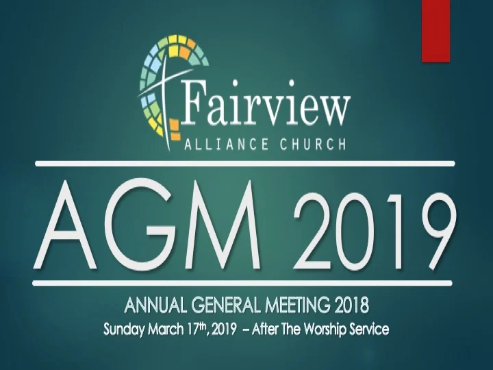 Your presence is very important. All regular attendees are welcome to attend, but only official members are entitled to vote. Kindly contact the church office should you need a copy of the booklet “Fairview Annual Report 2018”. Thank you for your co-operation and support.